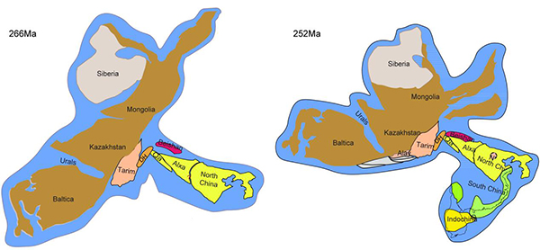 长期以来,大多数古地理重建中泛大陆在二叠纪(2.5亿年前)已基本成型,但东亚的各个板块是在什么时候与泛大陆连成一体却众说纷纭。之前的古地理重建研究综合了古地磁、构造、沉积等方面的资料,而拼合时间则来自于对沉积岩和变质岩的研究。然而,此前的研究未考虑四足动物的分布。近日,《地球科学评论》(Earth-Science Reviews)发表了中国科学院古脊椎动物与古人类研究所刘俊研究团队的研究结果,研究人员基于东亚二叠、三叠纪的四足动物化石重构了东亚板块的拼合历史。