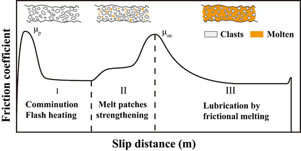 高速远程滑坡的弱化机制是学术界关注的热点和难点问题之一。通过对奥地利Kofels滑坡和尼泊尔LangTang滑坡滑动面上假玄武玻璃进行调查,发现是滑坡高速摩擦熔融形成,进而提出高速远程滑坡自润滑摩擦弱化假说。近年来,岩石高速旋转摩擦试验验证摩擦热熔润滑机理假说,并在巨型滑坡和断层机理研究中受到关注。但高速滑坡剪切带熔融过程对滑坡运动的影响存在疑问。中国科学院成都山地灾害与环境研究所何思明研究团队基于岩石高速旋转摩擦试验成果,在高速远程滑坡超强运动的热熔自润滑摩擦弱化机理研究中取得进展。
