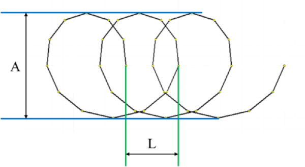 图2 焊接路径摆动示意图(其中A表示摆动幅度,L表示周期长度)