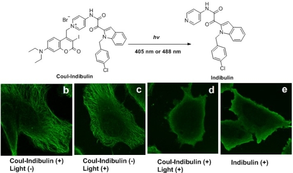 含有吡啶结构的微管蛋白聚合抑制剂Indibulin在活细胞内光解释放Indibulin,实现其调控功能