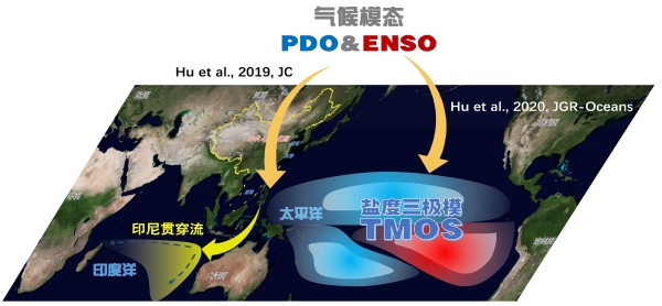 系列研究表明,太平洋气候模态ENSO和PDO通过大尺度调整,在热带太平洋形成TMOS模态,通过印尼贯穿流盐度平流效应影响印度洋海洋盐度的低频变化。太平洋TMOS的发现和印度洋盐度变化机制的阐释,有利于学界理解热带印太水团变化及其气候效应。