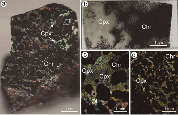 图3.土耳其蛇绿岩型铬铁矿石中的单斜辉石产出特征