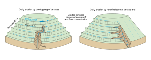 图1 倾斜梯田汇集地表径流导致切沟发育