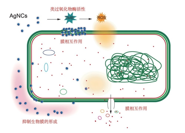 图三. 双亲性银纳米团簇抗多耐药细菌的作用机制示意图