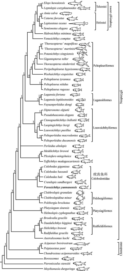图4.新重建的早期新鳍鱼类分支进化树(徐光辉 供图)
