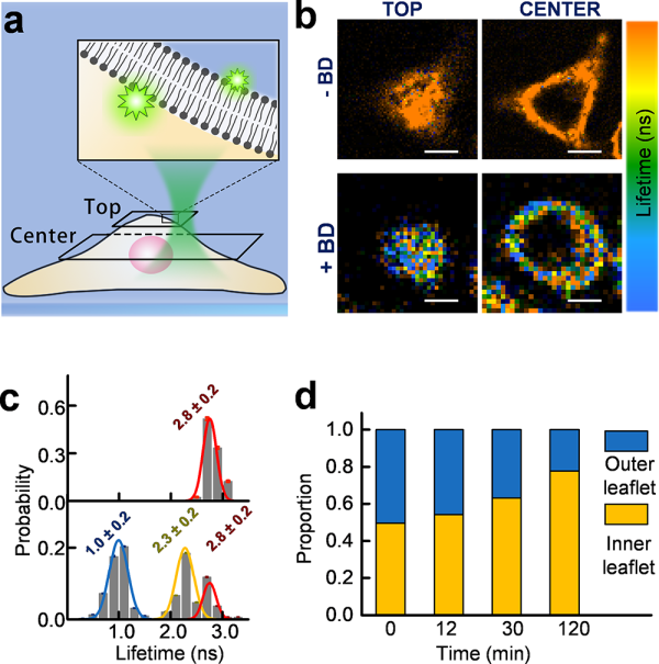 图3.基于共聚焦荧光寿命显微镜的细胞膜内外磷脂分子分析
