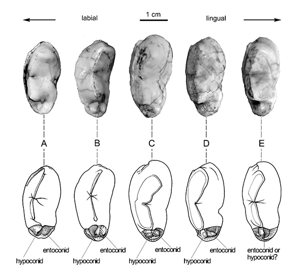 图3.三种短吻硕鬣狗亚种的下裂齿跟座形态比较(刘金毅供图)