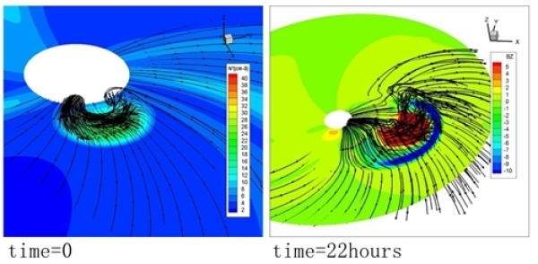 研究显示,改变初始磁场会影响CME到达地球时的地磁效应,但几乎不会影响CME在行星际空间传播的动力学过程;改变初始密度或几何尺寸会影响CME的传播过程,包括CME激波到达地球和火星的时间、CME在行星际空间的传播速度;若同时改变初始密度和几何尺寸,但保持初始质量不变,CME的传播过程则无明显改变, 这可能是由于该研究区域集中在行星际空间,相对于磁能,动能在CME传播过程中占主导地位。强的南向磁场一般和大的地磁暴密切相关,因此,南向磁场的峰值和持续时间均重要。结果表明,不仅是初始磁场,CME的初始密度(质量)也会影响南向磁场的持续时间。该研究仅讨论了初始质量(包含初始密度和几何尺寸)和初始磁场(包括大小和方向)的影响,并且仅考虑了传播方向沿日地连线,在未来的工作中,研究人员结合Parker Solar Probe和Solar Orbiter的观测数据,将对更丰富的初始参数、不同太阳风背景、不同行星际位置处的影响展开进一步的参数研究,希望对行星际空间的空间天气数值预报等方面做出新的贡献。相关研究成果以Numerical Research on the Effect of the Initial Parameters of a CME Flux-rope Model on Simulation Results为题,发表在The Astrophysical Journal Supplement Series上。