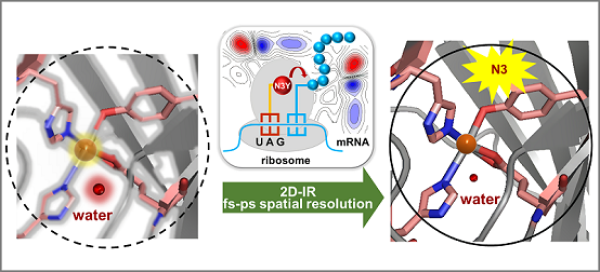 酶通过从飞秒到秒的各种时间尺度上运动进而执行重要的生物功能,关于缓慢运动(即毫秒到秒)如何影响底物结合和产物释放的已有许多已知信息,而对于飞秒(fs)到皮秒(ps)时间尺度上的快速运动对酶活性的影响知之甚少。二维红外(2D-IR)光谱固有的快速时间分辨率,特别适合监测蛋白质结构周围的水和离子fs-ps时间尺福动力学。近年来,蛋白质位点特异性红外探针的发展提高了时间分辨红外技术的空间分辨率,使其成为蛋白质动力学研究的重要工具。例如,基因编码的非天然氨基酸如对-叠氮基-L-苯丙氨酸和对-氰基-L-苯丙氨酸,已用于跟踪局部电场,表征蛋白质折叠动力学和蛋白质/蛋白质相互作用。然而,由于苯丙氨酸侧链多埋在蛋白质疏水核心内,通常不直接参与酶催化,这些基因编码的苯丙氨酸类似物在探索酶活性位点动力学方面的应用有限。酪氨酸残基普遍存在于许多酶的活性部位,常作为亲核试剂,质子供体,能参与氧化还原反应,具有形成阳离子-π相互作用及与金属离子配位等功能。酪氨酸残基在核酸生物合成、DNA修复、细胞色素氧化酶的氧还原、PSII的水氧化,以及其他生物过程中具有关键作用。然而,酪氨酸类似物作为2D-IR探针专门引入蛋白质中尚未有研究。