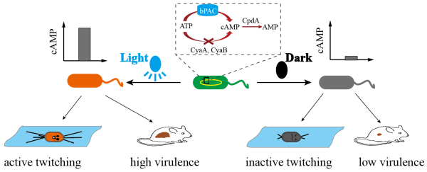 图2.通过光照控制细菌对小鼠的感染力