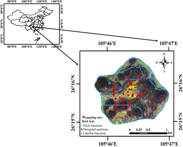 中国科学院亚热带农业生态研究所徐宪立研究团队在贵州省普定县陈旗小流域以空间代替时间的方法,选取次生林、灌丛、草地和耕地(对照)等四种典型植被演替阶段的土壤为研究对象,分析土壤的理化指标,考虑喀斯特区土壤浅薄这一特性另采集土壤厚度指标,通过构建基于全数据集法(TDS)和最小数据集法(MDS)的土壤质量指数(SQI)对不同演替阶段的土壤质量进行评估。