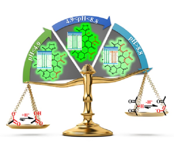 碳点具有粒径小、毒性低、耐光漂等优越性质,在光电器件、光催化、生物成像、生化检测等相关领域显示出应用潜力。近期,碳点的pH敏感荧光性质及其在pH传感中的应用引起广泛关注,但对于“pH敏感荧光的发光机理”这一关键基础问题的研究却鲜有报道,使得对碳点pH敏感荧光性质的调控成为限制其实际应用的难题。