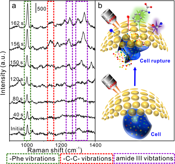 图3.光热刺激下A549细胞死亡过程原位动态监测谱图。
