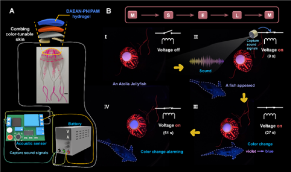 图3.仿生皮肤的应用,可以帮助人造警报水母实现动态警报功能