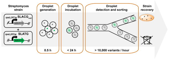 基于液滴微流的链霉菌高通量筛选技术示意图
