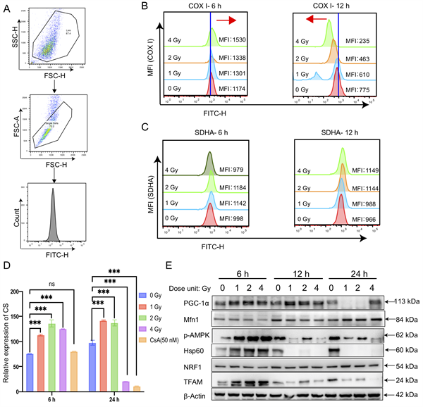 图3.辐射后与线粒体生物发生有关的关键蛋白的分析