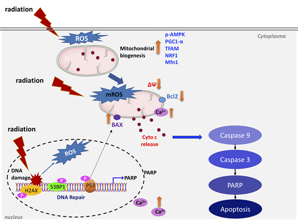 基于对细胞过程的观测,研究发现在辐射凋亡细胞早期阶段,线粒体生物发生有明显增强,即在一定条件下早期阶段细胞线粒体生物发生与后期发生的细胞凋亡具有正相关性,修正了以往笼统认为两者之间负相关性的观念。
