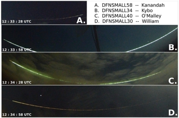 图1.2017年,澳大利亚上空出现的掠地火流星长曝光图片(来源:arXiv:1912.01895 [astro-ph.EP])