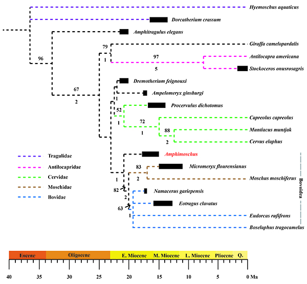 图4.西水半麝(Amphimoschus xishuiensis)的系统位置