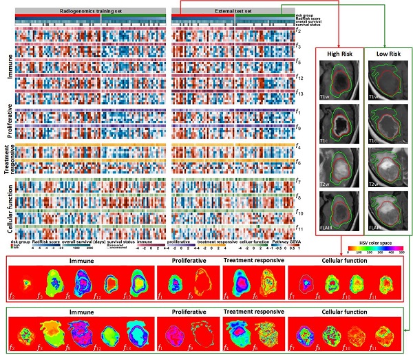 近日,中国科学院深圳先进技术研究院生物医学与健康工程研究所研究员李志成团队等在肿瘤影像-基因智能诊疗领域取得进展,利用肿瘤影像、基因等多组学数据,建立了生物医学可解释的人工智能精准诊疗模型,并在多中心数据集上对影像-基因映射关系进行了可重复性验证研究。相关研究成果以Biological pathways underlying prognostic radiomics phenotypes from paired MRI and RNA sequencing in glioblastoma为题发表在Radiology上。