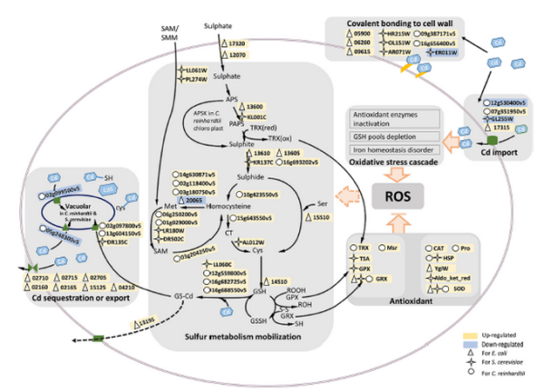 什么机制导致了生物的重金属抗性?在漫长进化中,每种生物形成了复杂且高度特异的机制以应对重金属胁迫。传统研究一般以单一基因或操纵子为目标,即“一个抗性一个基因(操纵子)”的研究逻辑。然而进入组学时代,科学家在众多个体中开展了转录组或基因组层面的研究,发现对于重金属响应发挥关键作用的不仅是特异性抗性基因,还包括基础代谢和全局调控因子,如最近频繁报导的硫代谢通路。进化上复杂程度和生理机制迥异的不同界生物,在镉胁迫响应上是否有保守遗传响应机制?中国科学院农业资源研究中心研究员李小方团队近期通过毒理学试验、比较转录组分析、基因组深度注释以及传统的功能基因组学方法结合,对三个跨界的模式物种(大肠杆菌、酿酒酵母和莱茵衣藻)在镉胁迫下的保守调控基因和模型进行探索。相关研究成果以Cross-Kingdom comparative transcriptomics reveals conserved genetic modules in response to cadmium stress(通过跨界比较获得的保守共调控镉胁迫响应代谢通路)为题,发表在mSystems上。