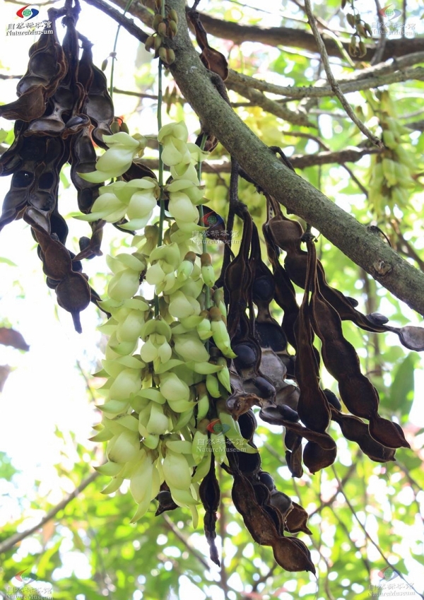 现生白花油麻藤(Mucuna birdwoodiana)的花序与荚果