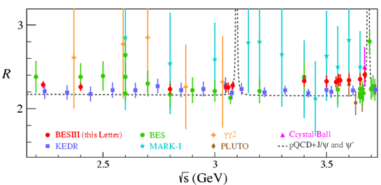 R值是正负电子湮没产生强子与一对正负缪子的领头阶截面的比值,是粒子物理学中重要的物理量之一。精确的R值数据对缪子反常磁矩的理论计算具有重要意义。最新的缪子反常磁矩的实验测量值和理论计算值的差别约4.2倍标准偏差,暗示着新物理的存在,因而成为当前粒子物理的热点话题。美国费米实验室计划进一步提高实验测量精度,对理论计算提出了挑战。而理论计算值的最主要误差来自于领头阶强子真空极化项的贡献,其计算采用色散积分方法需要R值作为输入参数。由于微扰量子色动力学在低能区(< 5 GeV)的不适用性,实验测量是获取高精度R值的唯一途径。因此,BESIII的R值测量对缪子反常磁矩理论预言具有重要意义。此外,高精度的R值对跑动电动力学耦合常数的理论计算亦是不可缺少的输入参数,是精确检验标准模型的另一个重要途径。