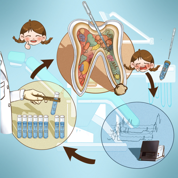 在口腔根管治疗中,机械清创不能完全去除根管表面的生物膜,还需辅以根管冲洗抑菌液以确保管间交通支、副根管等器械不易到达部位的彻底清创,是根管治疗的一个重要步骤,也是最终根管治疗成功的关键。理想的根管冲洗液应能有效控制病原体、溶解残余牙髓组织和玷污层,并且无毒、不致敏,然而这些理想的特征往往是相斥的。同时,由于缺乏快速准确评估根管冲洗抑菌液对感染微生物影响的方法,临床根管治疗过程中根管冲洗抑菌液的类型、浓度、持续时间或组合的选择往往是基于经验。因此,迫切需要开发一种简便且快速的检测技术,能够实时追踪不同配比冲洗液处理下口腔微生物的代谢抑制状态,进而指导临床根管治疗。