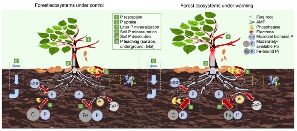 增温背景下森林生态系统磷循环示意图