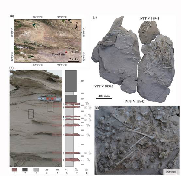 图1.天山哈密翼龙蛋化石产地及化石标本
