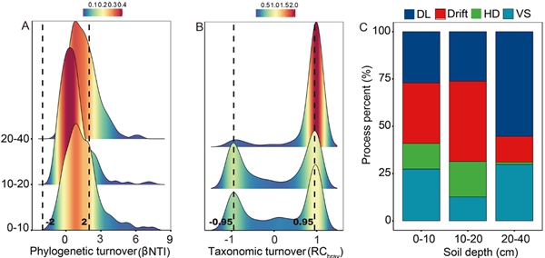 图1.不同土层中细菌群落构建过程