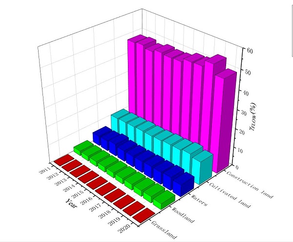 图2 青海省不同土地利用类型自然资本流动占用率的历史变化