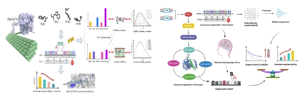 中国科学院天津工业生物技术研究所营养资源合成生物学研究组联合大连工业大学和大理大学等,针对纤维素酶系中核心酶元件,从酶的理性设计、底物结合力增加、天然底物应用指导选育策略等角度系统性介绍了改善现有木质纤维素降解酶性能的方法。科研团队针对纤维素外切酶,解析了Cel7A催化结构域中4个色氨酸在酶与底物结合、底物空间翻转方面的重要作用。研究发现,突变体在水解天然纤维素或纤维素结构类似物时,催化效果存在明显差异性,因此,以天然底物应用为指导的纤维素选育策略是提升纤维素酶工业化应用效率的关键。此外,科研人员针对纤维素内切酶,利用上亿条氨基酸序列进行机器学习建库,将序列决定和结构决定策略相结合,筛选出纤维素内切酶最佳理性改造位点,突破了酶活力和稳定性难以双提升的技术瓶颈,纤维素内切酶酶活力提升了18.06%,同时,热稳定性提升了62.90%,改善了木质纤维素降解酶系的工业属性,最终实现了纤维素酶规模生产应用的目标。