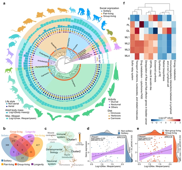 图2.哺乳动物社会组织与寿命的分子机制探究