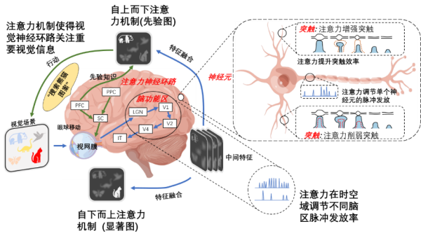 近年来,以传统人工神经网络为代表的深度学习在一些任务上展现出接近或超越人类的能力。在取得这些成就的同时,人类付出了海量的能耗代价。而人脑能够以极低地能耗高效完成相同或更复杂的任务。如何使得机器智能像人脑一样高效工作是科学家孜孜以求的目标。基于脉冲神经网络的神经形态计算提供了极具吸引力的传统人工智能的低能耗替代方案。脉冲神经元模拟了生物神经元中的复杂时空动态,其表达能力在理论上强于现有的人工神经元。同时,脉冲神经元继承了生物神经元中的脉冲通信方式,这是脉冲神经网络实现低功耗的关键。一方面,在神经形态系统中只需要执行低能耗的突触加法;另一方面,事件驱动特性使得只有脉冲神经元发放脉冲时神经形态系统才会触发计算。因此,如何以低脉冲发放率实现高任务性能是神经形态计算中的重要问题。人脑可以自然而有效地在复杂场景中找到重要信息,被称为注意力机制。注意力机制被广泛应用于深度学习,并取得显著效果。然而,在神经形态计算领域的应用仍颇具挑战性。