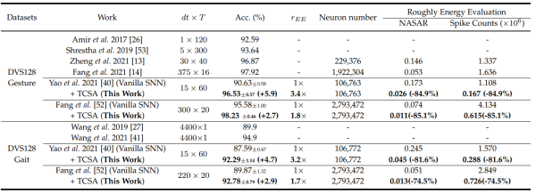 表1.在DVS128 Gesture/Gait上结果性能对比