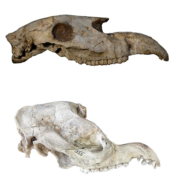 图3.原始长鼻三趾马和现生马来貘的头骨