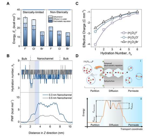 图1. 脱水合强化的离子-膜孔静电相互作用