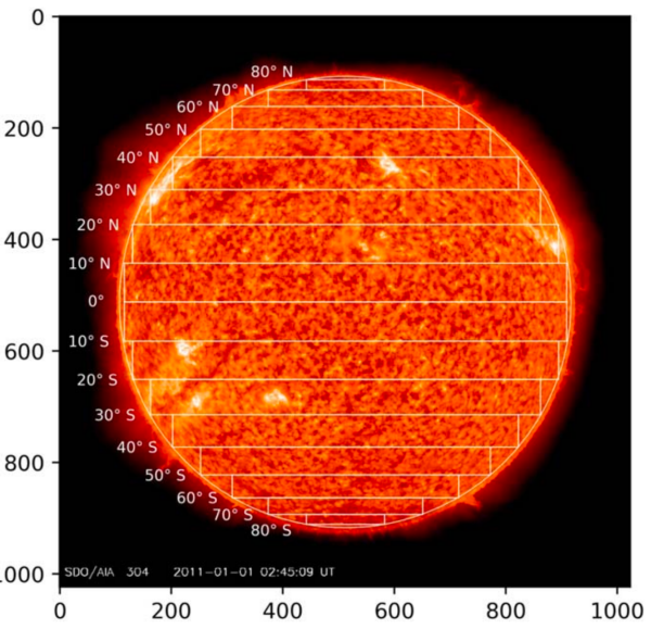 太阳过渡区的全日面304埃图像及纬度划分带