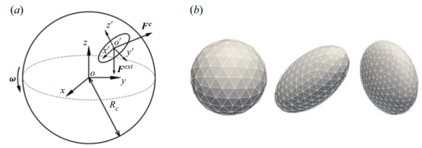 全受限(total confinement)低雷诺数流体中的颗粒输运对细胞内药物、蛋白质、病毒等物质的输运、微流控封装技术、微液滴反应器等应用颇为重要。为掌握颗粒输运规律,各国学者从单颗粒系统出发,探究了球腔内颗粒的运动规律。尽管学界已在静止球腔内中性(neutrally buoyant)球形颗粒输运方面取得了进展,但关于腔内非球形、非中性颗粒与非静止球腔中颗粒输运及其基本运动规律有待研究。