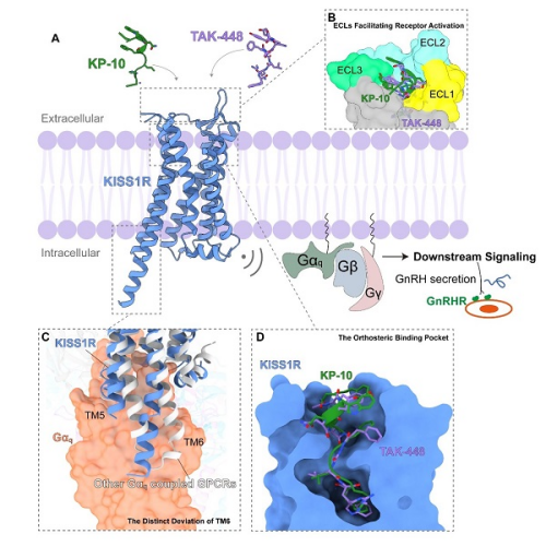 上述结构研究为探讨KISS1R的肽配体识别、受体激活及其与Gq蛋白偶联的分子机制奠定了基础。这些结构和功能的研究成果为应对生殖和癌症治疗领域的挑战提出了见解。