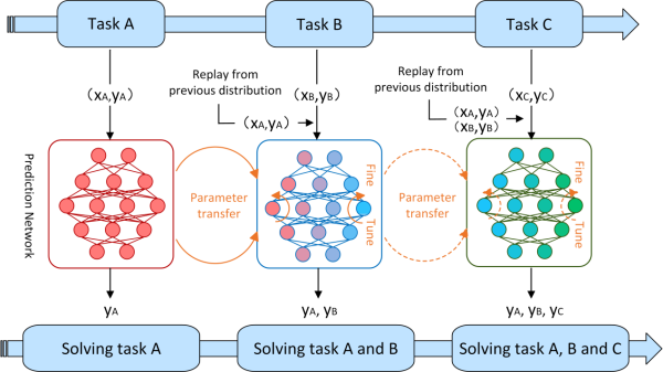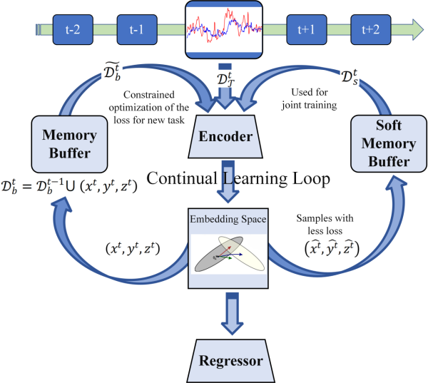 该研究从网络训练和网络结构两个方面改进了持续学习方法。研究通过基于提示的网络参数学习保留了先前任务的“暗知识”,缓解灾难性遗忘,并引入软记忆缓冲区使模型能够更好地学习当前任务,进而在稳定性与可塑性之间实现平衡。进一步,研究在网络结构层面提出了时间敏感的激活函数TimeRelu,使网络激活阈值随时间变化,从而提高了模型的泛化能力。这一方法在开源的太阳能发电数据集和实际的磨矿分级过程数据集上验证了有效性。