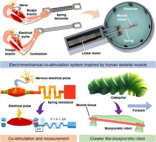 近日,中国科学院沈阳自动化研究所科研人员受人类骨骼肌训练模式启发,开发出电-力共刺激系统,可提升人工骨骼肌组织的驱动性能。