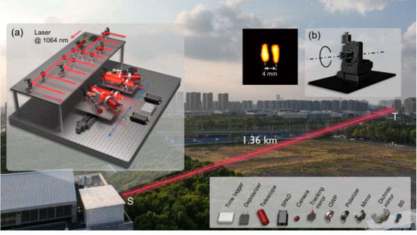 近日,中国科学技术大学潘建伟、张强、徐飞虎等,联合美国麻省理工学院、中国科学院西安光学精密机械研究所等单位的科研人员,首次提出并实验验证了主动光学强度干涉技术合成孔径技术,实现了对1.36公里外毫米级目标的高分辨成像。实验系统的成像分辨率较干涉仪中的单台望远镜提升约14倍。