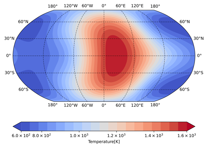 浅水模型模拟WASP-39 b 的温度分布图