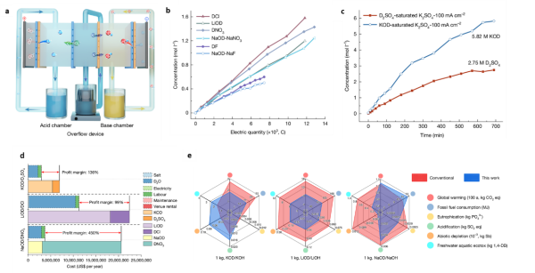 该研究以廉价的重水和无机盐为原料,在室温条件下利用双极膜电渗析技术直接高效解离重水,一步生成高浓度的氘代酸和氘代碱,大幅降低了生产成本,有望为下游众多氘代化学品提供经济、优质的氘代酸碱原料。