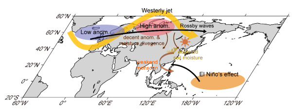 1920年代末中国北方极端干旱事件成因的环流异常机理图