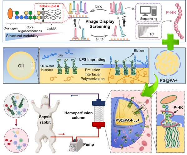 脓毒症是由感染引起的全身炎症反应疾病,脂多糖(又称内毒素)作为脓毒症的核心致病因子,在疾病早期及时清除,对于阻断病情恶化、挽救患者生命有重要作用。然而,脂多糖结构多样、血液中含量极低且血液成分复杂,实现其高效、高特异性清除一直是临床面临的挑战。