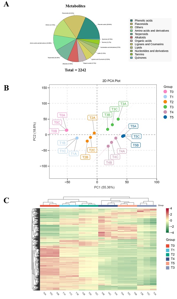 多变量统计分析不同胀气阶段浓缩刺梨汁代谢物