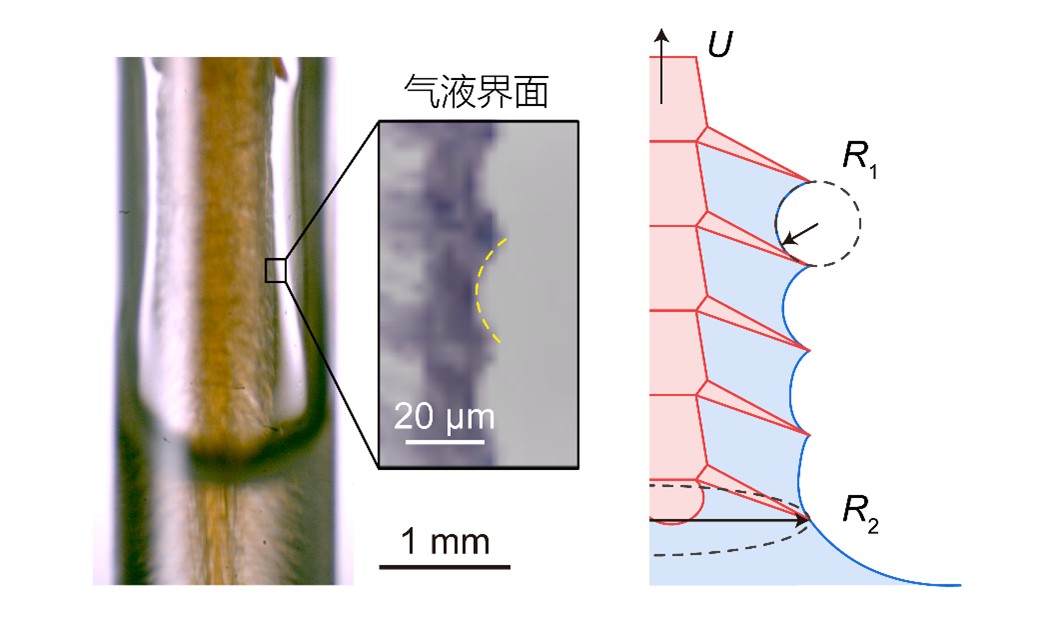 研究团队进一步基于显微高速成像技术发现,中唇舌回撤时,相邻刚毛形成弯曲的气液界面。这些界面提供了一个额外的毛细压力梯度,增强了粘性花蜜的夹带。除液体表面张力,液体粘度也对花蜜捕获起到了作用。研究团队通过引入邦德数和毛细数两个无量纲数,可衡量该液体输运过程中重力、毛细力、粘性力的相互作用。要使花蜜充分填充中唇舌的有效空间,该系统需处于低邦德数、高毛细数的工作区间;而若维持较高的花蜜填充率,邦德数与毛细数之间还需满足特定的标度关系。然而,受中唇舌结构的生长限制,自然环境下熊蜂体型增大时,其口器难以达到最优标度关系,此时重力作用将占据主导,进而降低花蜜填充率。